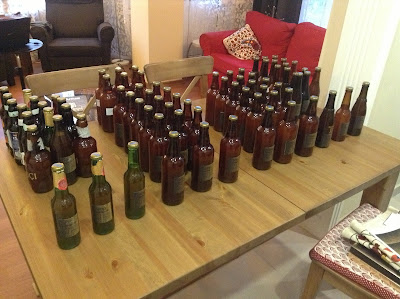 Resimlerden de görüleceği üzere bu sefer biraz daha düzenli ve sistemliydik. Tüm biraları şişelere doldurduk. Pet şişe kullanımı olmadı. Ayrıca kit versiyonlarında tortu da olmadığı için yaklaşık 34 litreye yakın bira şişelemiş olduk. Resimlerden de görebileceğiniz üzere bunları etiketledik..